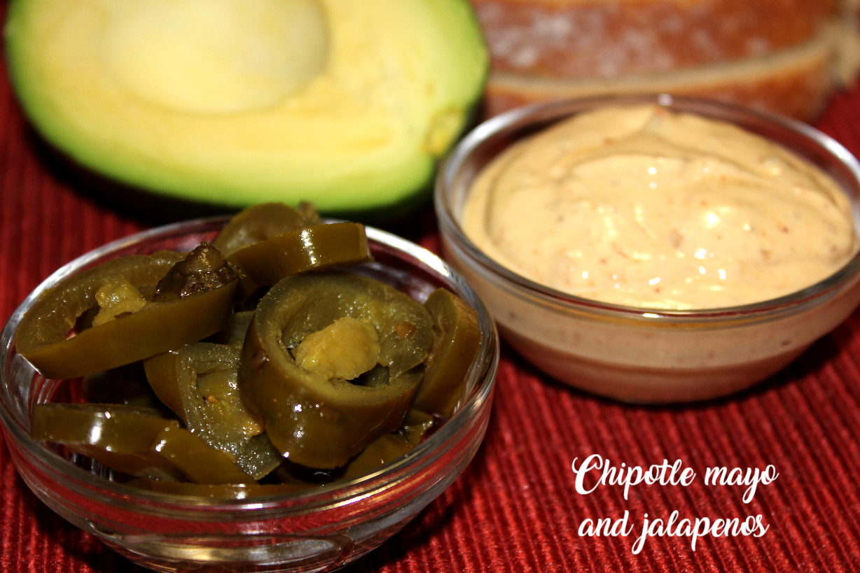 - Në fillim përgatisni majonezën me chipotle. Bashkoni ¼ kupë majonezë me 2 lugë çaji chipotle pluhur** ose 1 lugë gjelle salcë chipotle. Kjo salcë mund të përgatitet në avancë dhe në sasi të madhe për ta pasur për receta të ndryshme. Nëse nuk mund të gjeni specin chipotle mund ta zëvëndësoni me një salcë të thjeshtë duke përzier përbërësit si më poshtë: