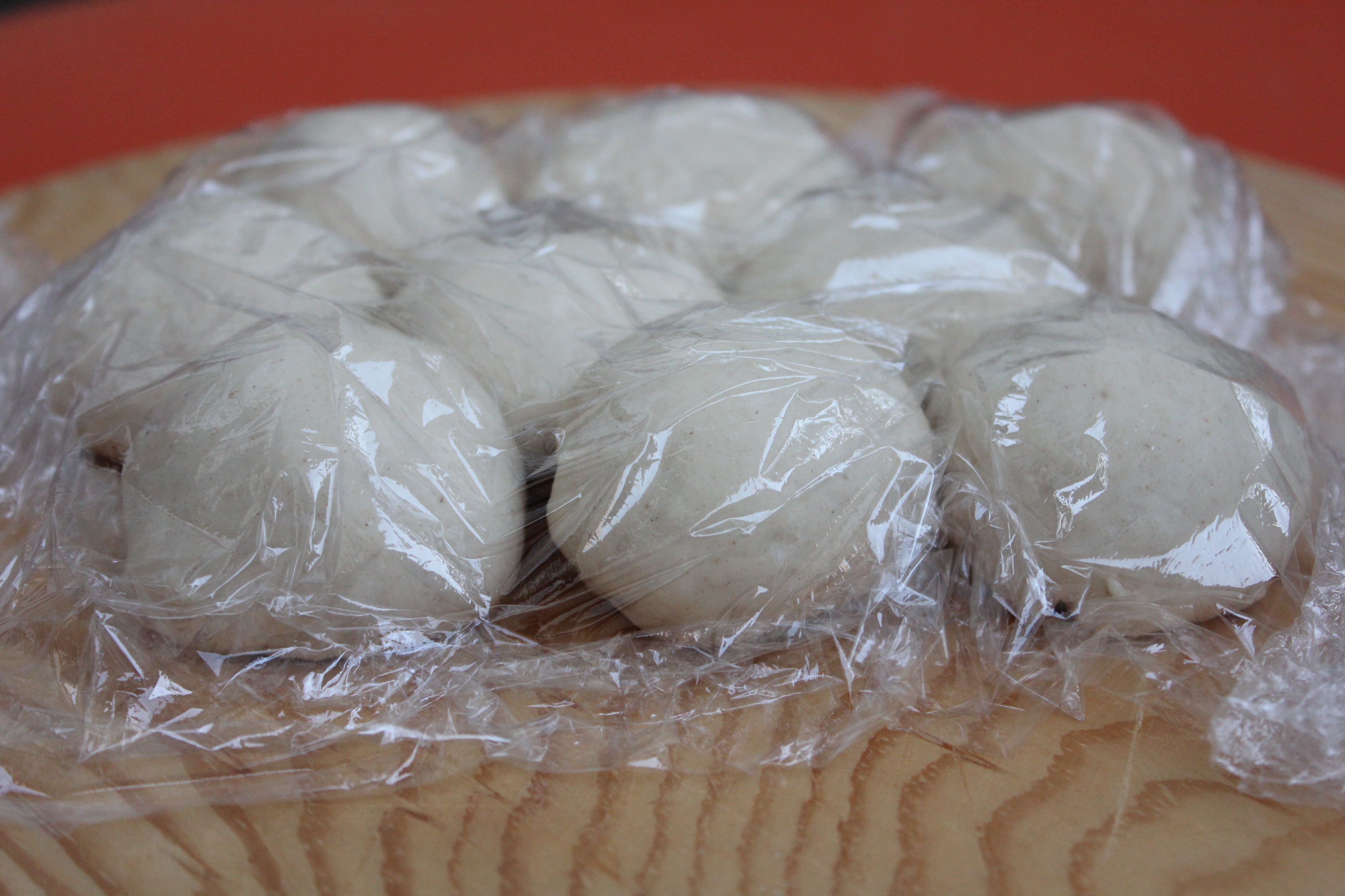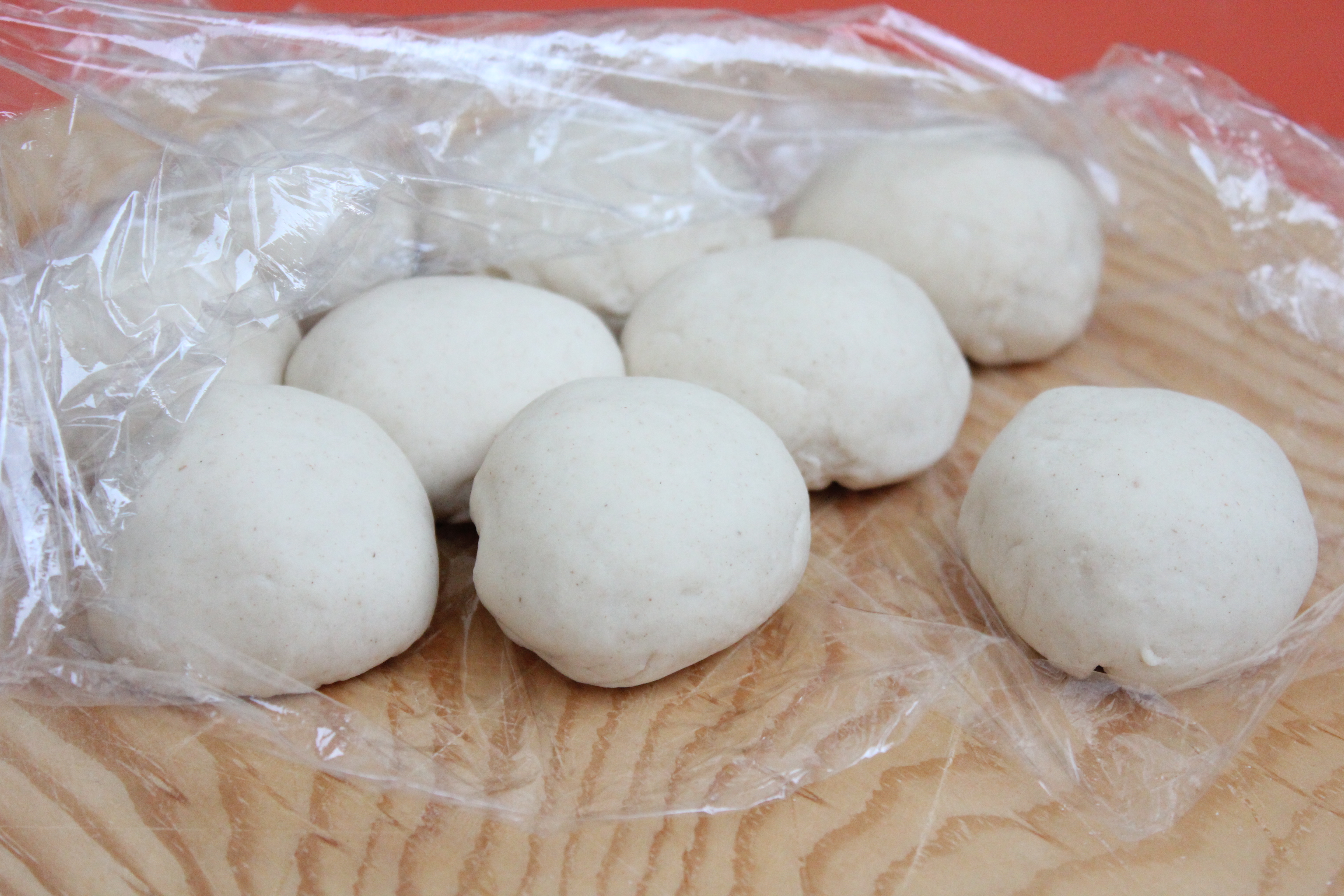 - Mbulojeni brumin me qese transparente që mos të thahet dhe lereni të pushojë për gati 30 deri në 60 minuta (unë dola shëtitje me fëmijët pas këtij hapi dhe e lashë brumin për gati 1 orë). Ky hap është i domosdoshëm pasi e bën brumin të butë dhe elastik dhe hapet kollaj.