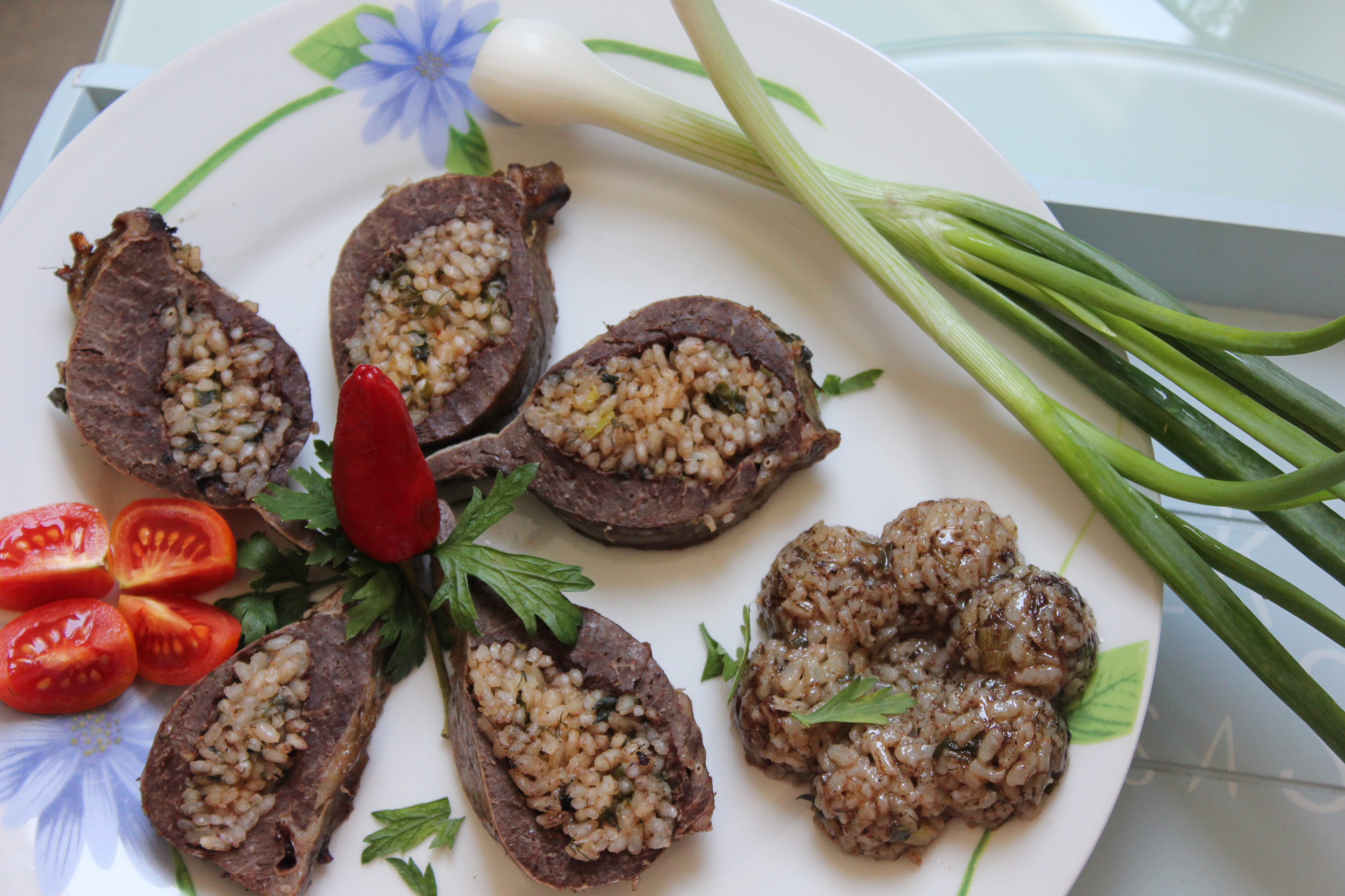 - 3 qepë të njoma të prera hollë