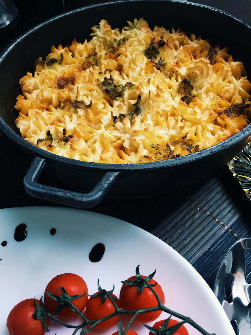 Ja dhe dimri hyri zyrtarisht. Edhe pse temperaturat nuk kanë rënë ende, kjo javë ka qënë plot me rreshje shiu dhe po kështu pritet edhe fundjava. E meqënëse nuk do dalim nga shtëpia, mendova të gatuaj këtë tavë të ngrohtë për drekën e të shtunës. E kisha provuar ta gatuaja edhe para disa javësh dhe familja ime e pëlqeu, plus që bëhej gati në më pak se një orë, kështu që dhe mami (dmth unë) është e lumtur 😂