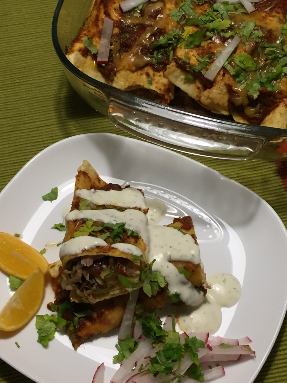 Sot ama do ju shkruaj për një tavë me enchiladas që nuk janë asgjë tjetër veçse pite misri të mbushura me gjëra të shijshmë dhe të vendosura në furrë për disa minuta.
