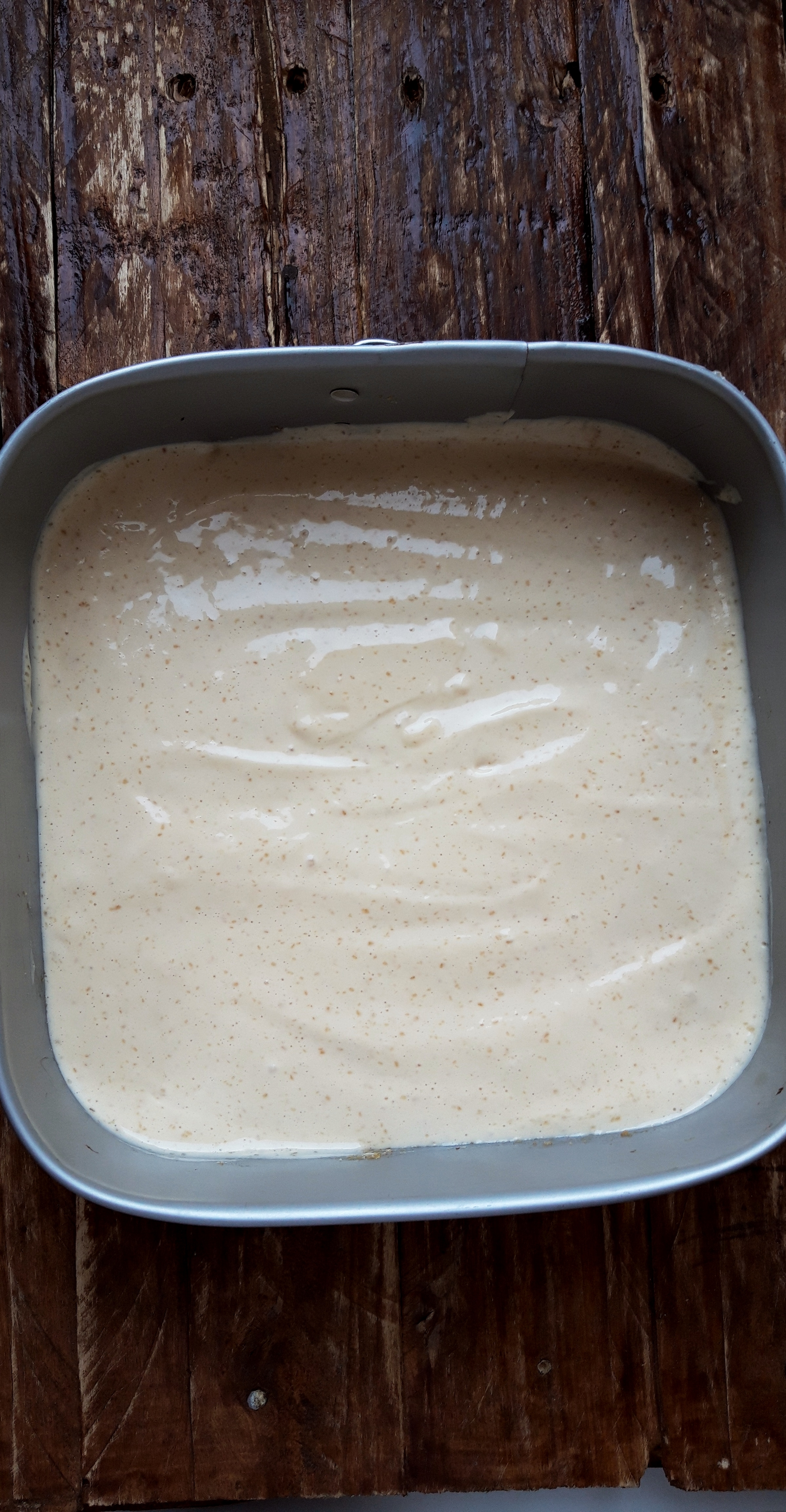 Për këtë ëmbëlsirë ju këshilloj të përdorni një tavë katrore me dimensione 20cm x 20cm