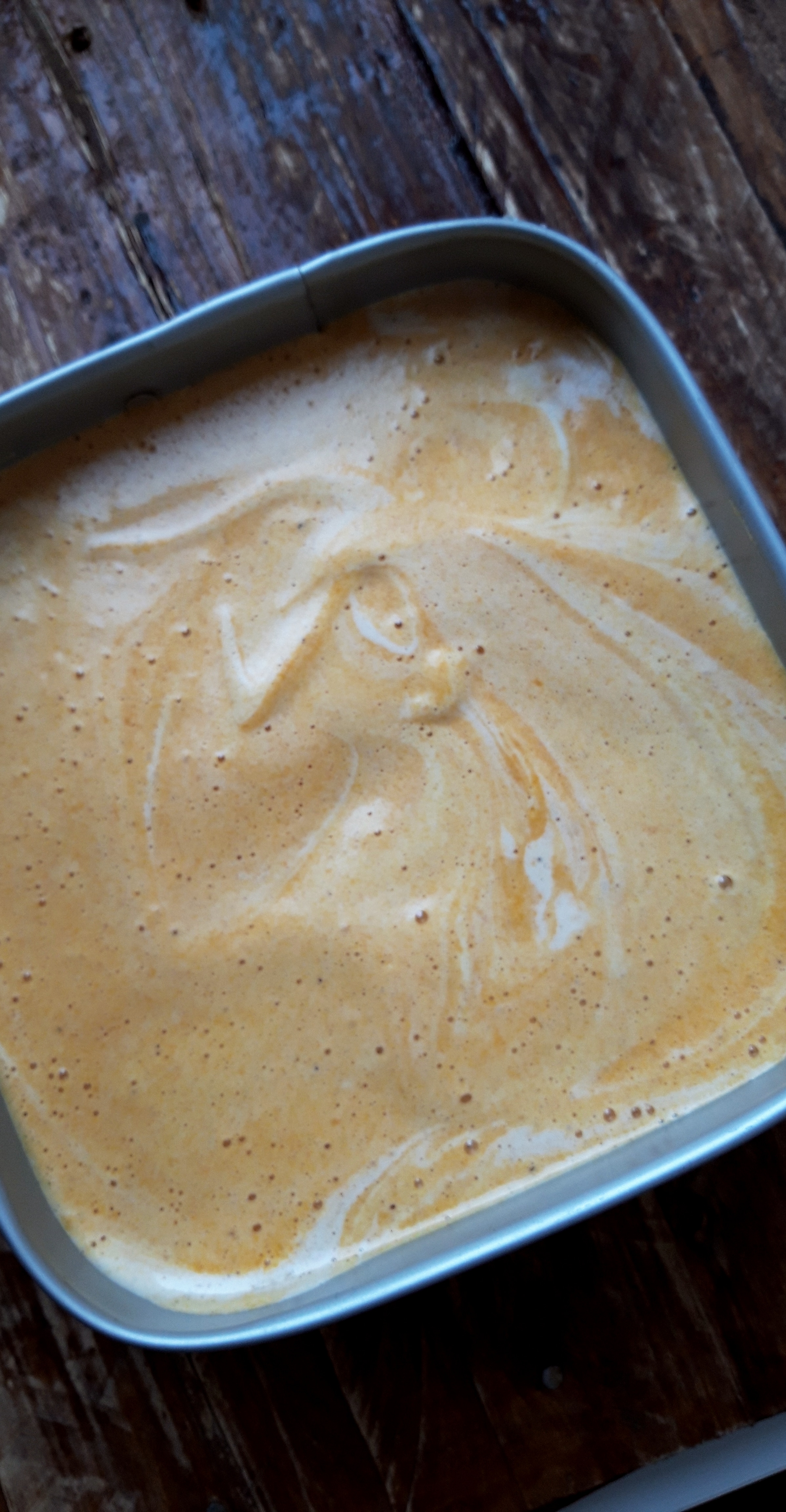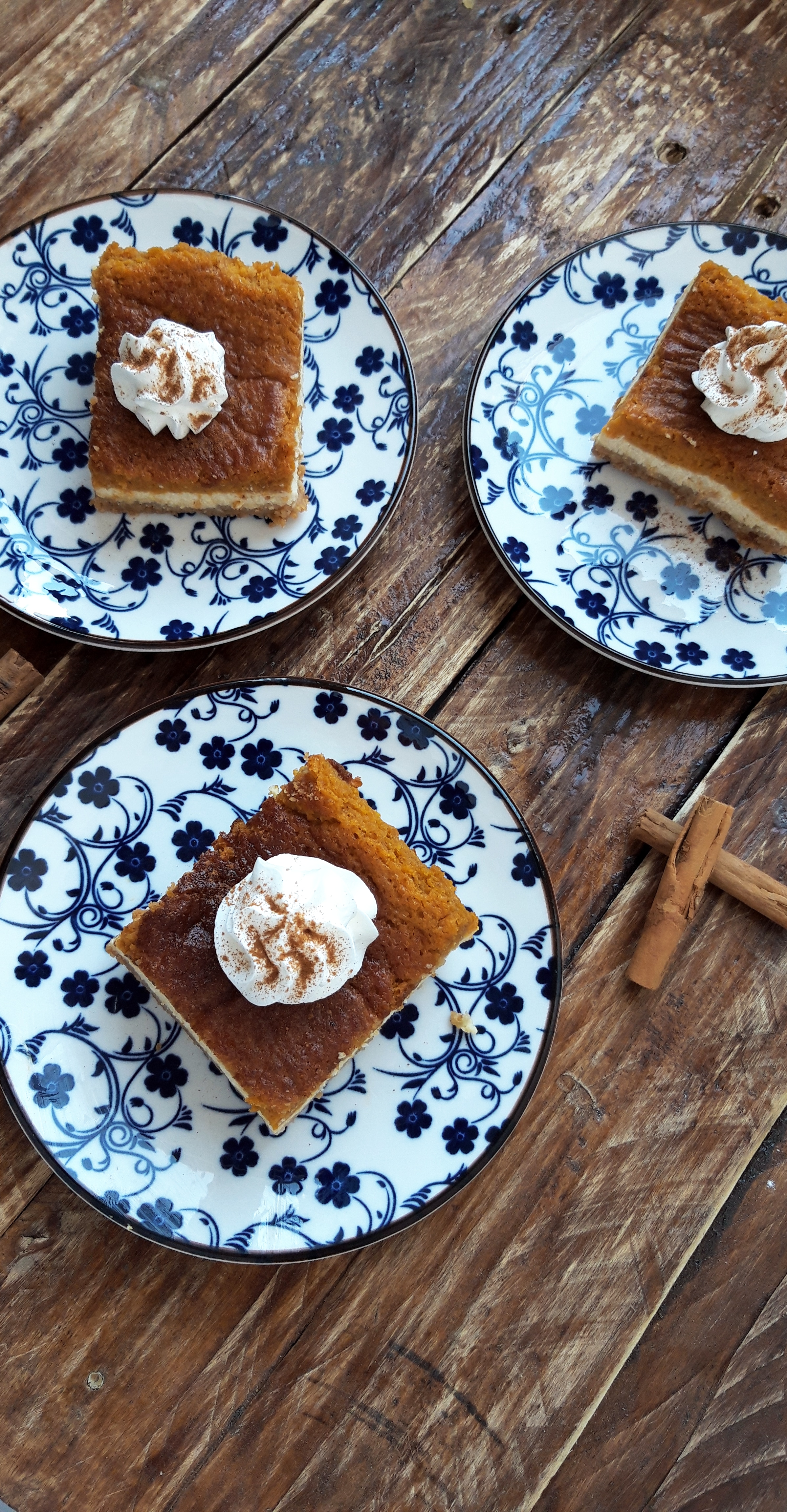 [lt_recipe name=”Cheesecake me kungull e krem djathi” servings=”16 katrorë” prep_time=”10M” cook_time=”40M” total_time=”50M” difficulty=”E thjeshtë” print=”yes” image=”https://bakemydayhappy.com/wp-content/uploads/2018/11/IMG_20181111_100708_782.jpg” ingredients=”Për bazën e biskotave:;• 200gr biskota digestive (të thërrmuara);• 80gr gjalpë;Për mbushjen me djathë:;• 250gr krem djathi;• 100gr sheqer kaf;• 1 kokërr vezë;Për mbushjen e kungullit:;• 330gr pure kungulli;• 100gr sheqer kaf;• 2 kokrra vezë;• 1 lugë çaji kanellë;• ¼ lugë çaji xhinxher pluhur;• 1 majë luge karafil pluhur;• Panna e rrahur për dekorin final;” ]Ndezim furren në 200ºC; Shkrijmë gjalpin dhe e bashkojmë me biskotat të cilat I kemi grirë në pluhur më parë. E shtrojmë bazën në mënyrë uniforme dhe e lëmë në frigorifer të mpikset ndërkohë që bëjmë mbushjen; Në një tas qelqi rrahim vezën dhe sheqerin sa të bëhen shkumë e të kenë trefishuar volumin. Shtojmë djathin dhe e trazojmë mirë; Nxjerrim tavën nga frigoriferi dhe shtrojmë bazën e parë me krem djathi; Në të njëjtin tas ku përgatitëm bazën e bardhë rrahim vezët dhe sheqerin sat ë bëhen shkumë e të kenë trefishuar volumin; Shtojmë erëzat, purenë e kungullit dhe e trazojmë mirë; E hedhim edhe këtë mbi bazën me krem djathi dhe e pjekim në furrën e parangrohur për 20 min në 200º dhe më pas për 20 min në 180º; E lëmë ëmbëlsirën të ftohet mirë dhe e shërbejmë me pak panna të rrahur e një spërkatje kanelle[/lt_recipe]