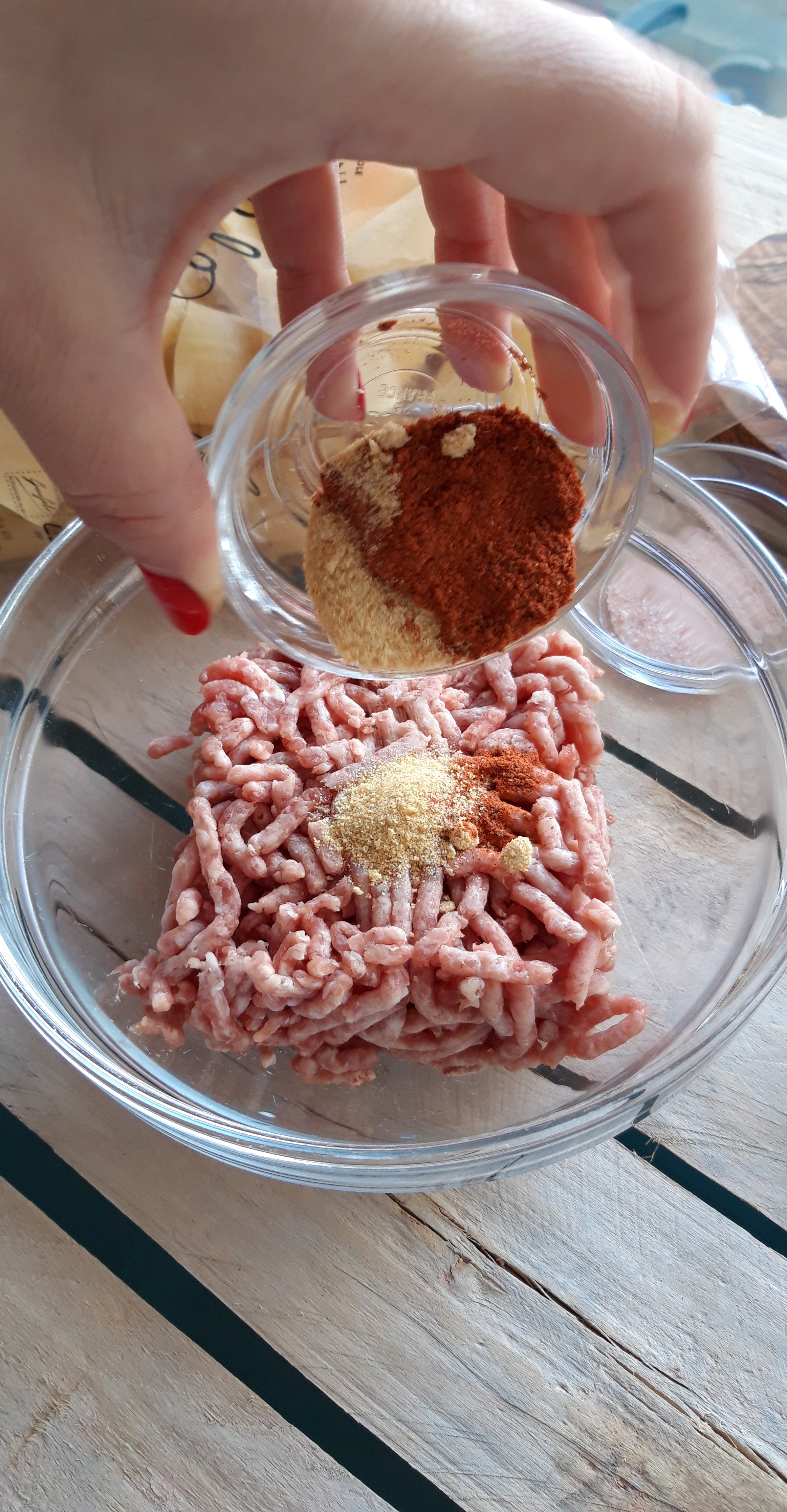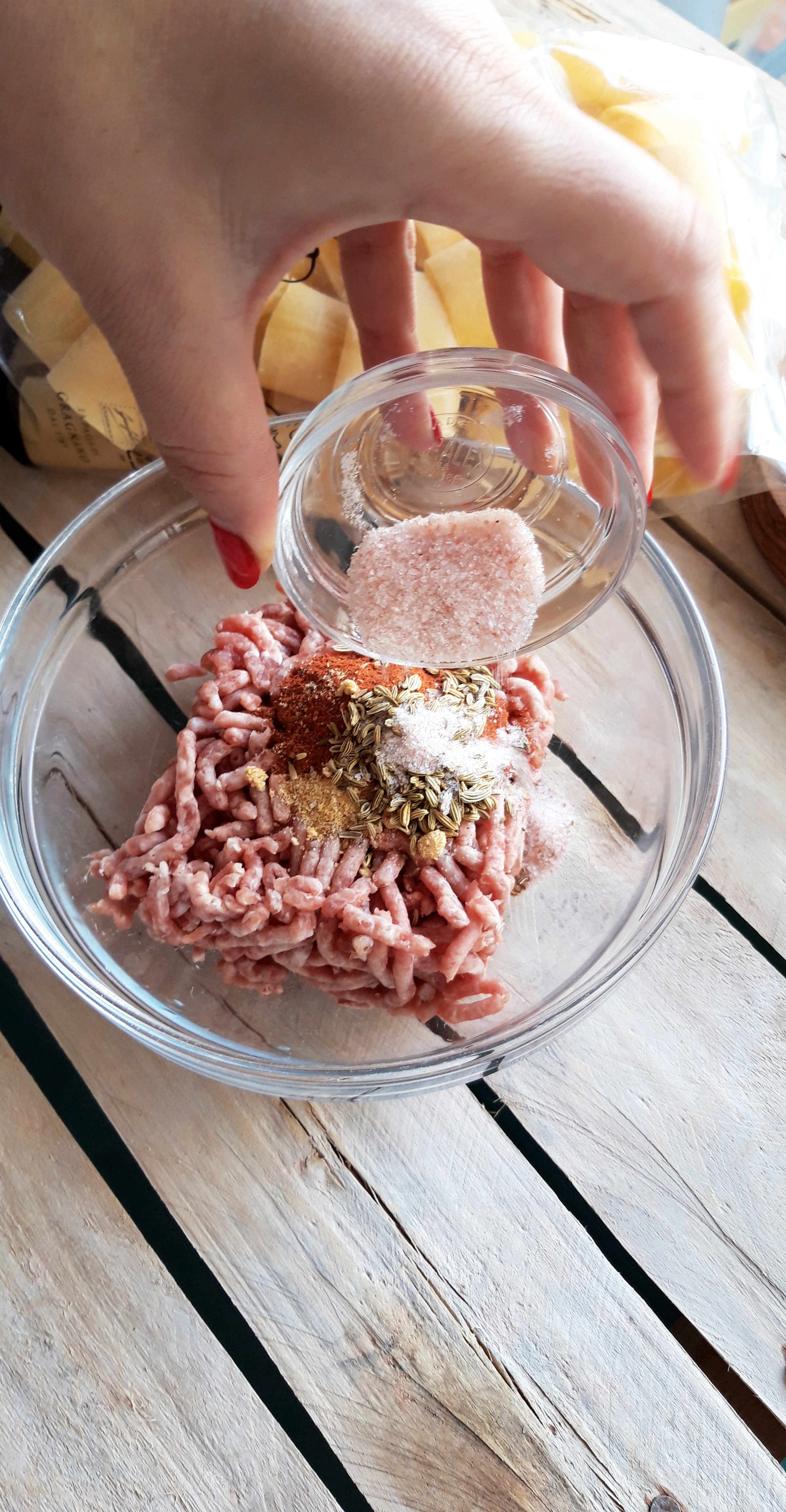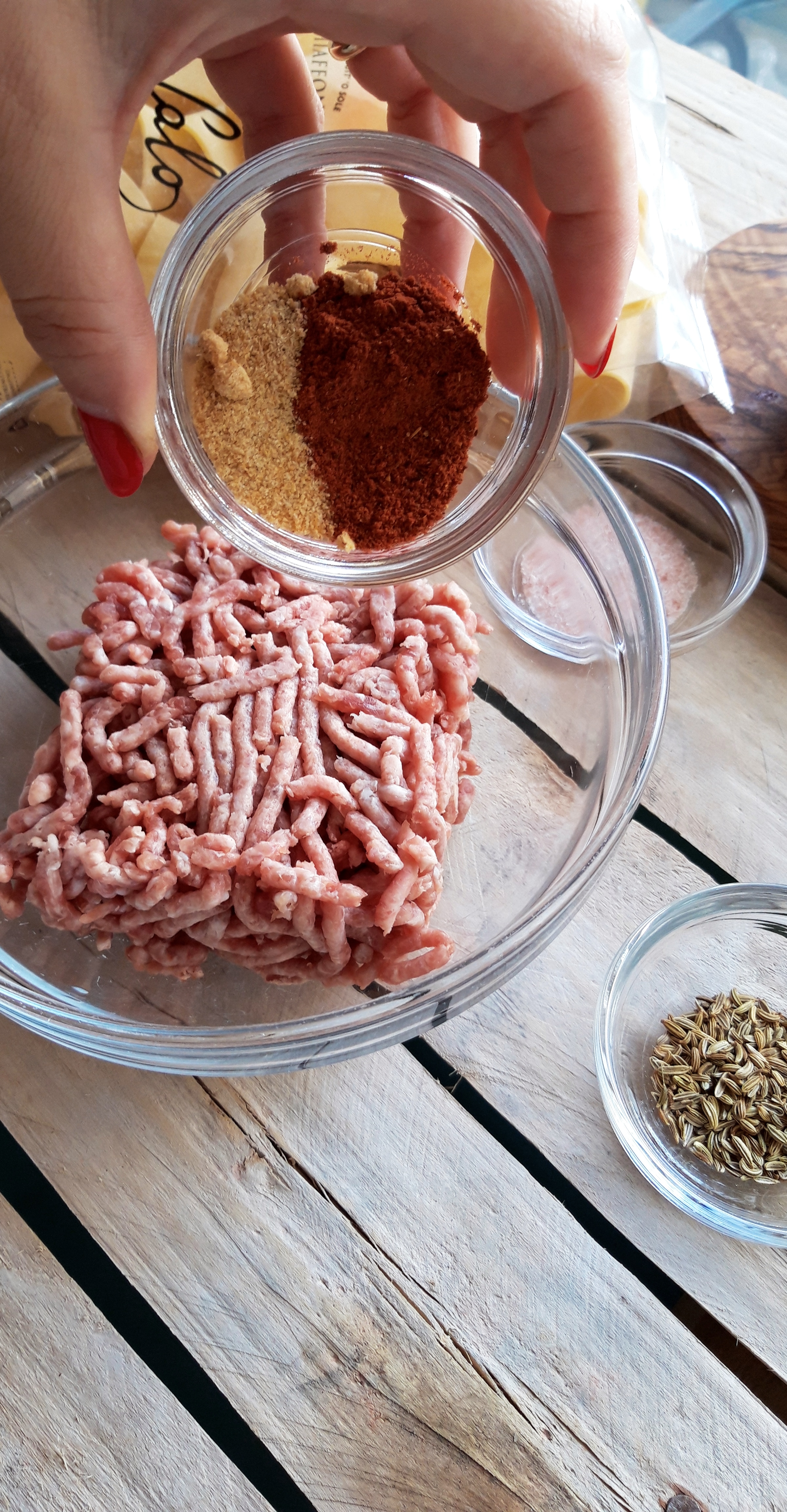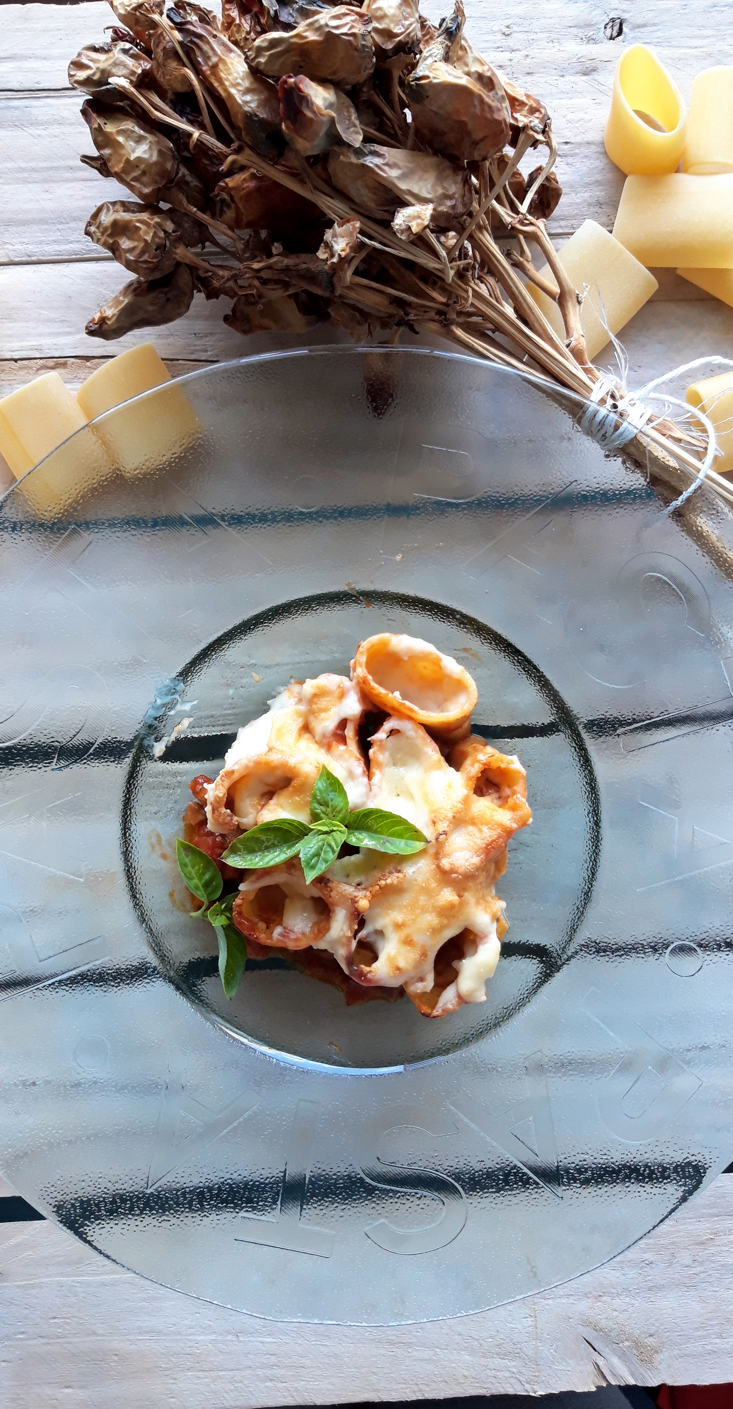 [lt_recipe name=”Makarona paccheri të mbushura me saçiçe të bërë vetë” servings=”4 persona” prep_time=”20M” cook_time=”25M” total_time=”50M” difficulty=”Mesatare” image=”https://bakemydayhappy.com/wp-content/uploads/2018/11/stuffed-paccheri-pasta.jpg” ingredients=”Për salçiçet e bëra në shtëpi:;• 250gr mish i grirë;• 1 lugë çaji fara finoku;• 1 lugë çaji paprika e ëmbël;• 1 lugë çaji pluhur hudhre;• 1 lugë çaji kripë;Për makaronat:;• 400gr makarona të tipit paccheri;• 5 lugë gjelle djathë grana I grirë;• 1 kavanoz salcë me borzilok;• 3 kërpudha porçini te prera në kubikë;• 1 lugë çaji pastë xhixher-hudhër;• 2 lugë gjelle vaj ulliri;• 2 kupa ujë nga lëngu I makaronave;• 6-7 lugë gjelle salcë beshamel;Për salcën beshamel:;• 1 gotë qumësht;• 50 gr gjalpë;• 30 gr miell;• Pak arrë moskat dhe kripë për shije;” ]Fillojmë me salçiçet. Në një tas bashkoni gjithë përbërësit për salçiçet dhe ndajeni brumin në 3 pjesë; Me duart e lyera me vaj ulliri jepini formë si 3 salçiçe stërgjatëshe. Pritini në copëza me thikë dhe lerini të marinohen për 30 minuta (do na shërbejnë si bazë për salcën e mbushjes për makaronat Paccheri); Vendosim ujin për makaronat dhe sapo të marrë vlim, I hedhim pak kripë dhe shtojmë makaronat të cilat duhet të zihen vetëm për gjysmën e kohës që ka në paketim; Në një tigan skuqim në vaj ulliri pastën xhinxher-hudhër (receta është në blog); Shtojmë salçiçet dhe I skuqim paksa. Shtojmë kërpudhat, salcën me brozilok dhe 1 kupë nga uji I makaronave. E lëmë salcën të trashet pak (5 minuta); Ndezim furrën në 220˚C; Kullojmë makaronat dhe I rreshtojmë në këmbë në një tavë rrumbullake si në foto. Marrim mbushjen e cila tashmë është gatuar dhe me një lugë çaji mbushim gjithë makaronat. Pjesën e mbetur e shtojmë anash në tavë; Shtojmë kupën mbetur nga uji I makaronave dhe e mbulojmë tavën me lëtër alumini; E pjekim në furrë për 20 minuta;Në këtë kohë bëjmë salcën beshamel. Tresim gjalpin në një tigan dhe shtojmë miellin. E trazojmë disa sekonda dhe shtojmë qumështin. E zijemë deri sa salca të trashet dhe në fund e rregullojmë me kripë dhe pak arrë moskat; Ndjerrim taven nga furra dhe I hedhim sipër salcën beshamel dhe djathin grana. E fusim në furrë sa të marrë ngjyrë të florinjtë dhe më pas tavën e kemi gati.[/lt_recipe]Makarona paccheri të mbushura me saçiçe të bërë vetë