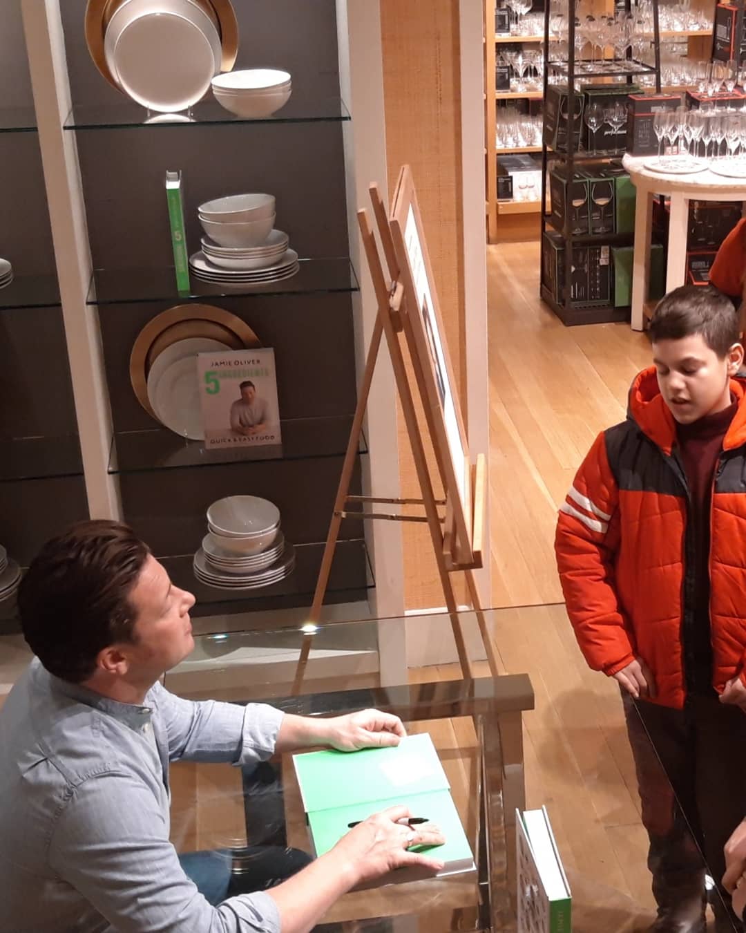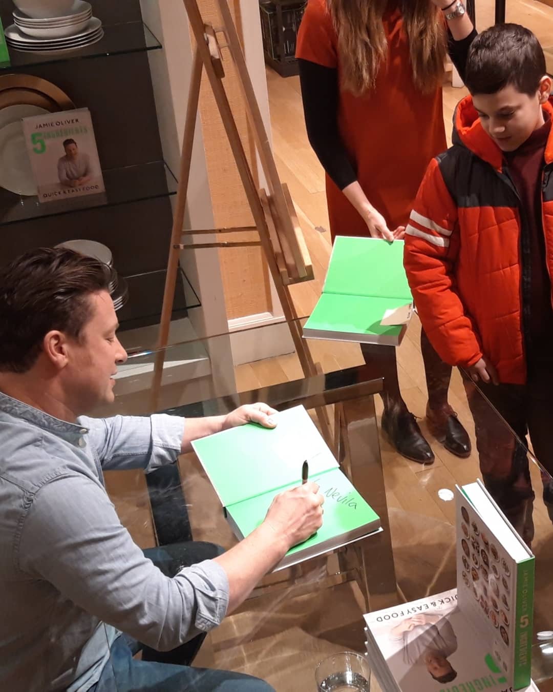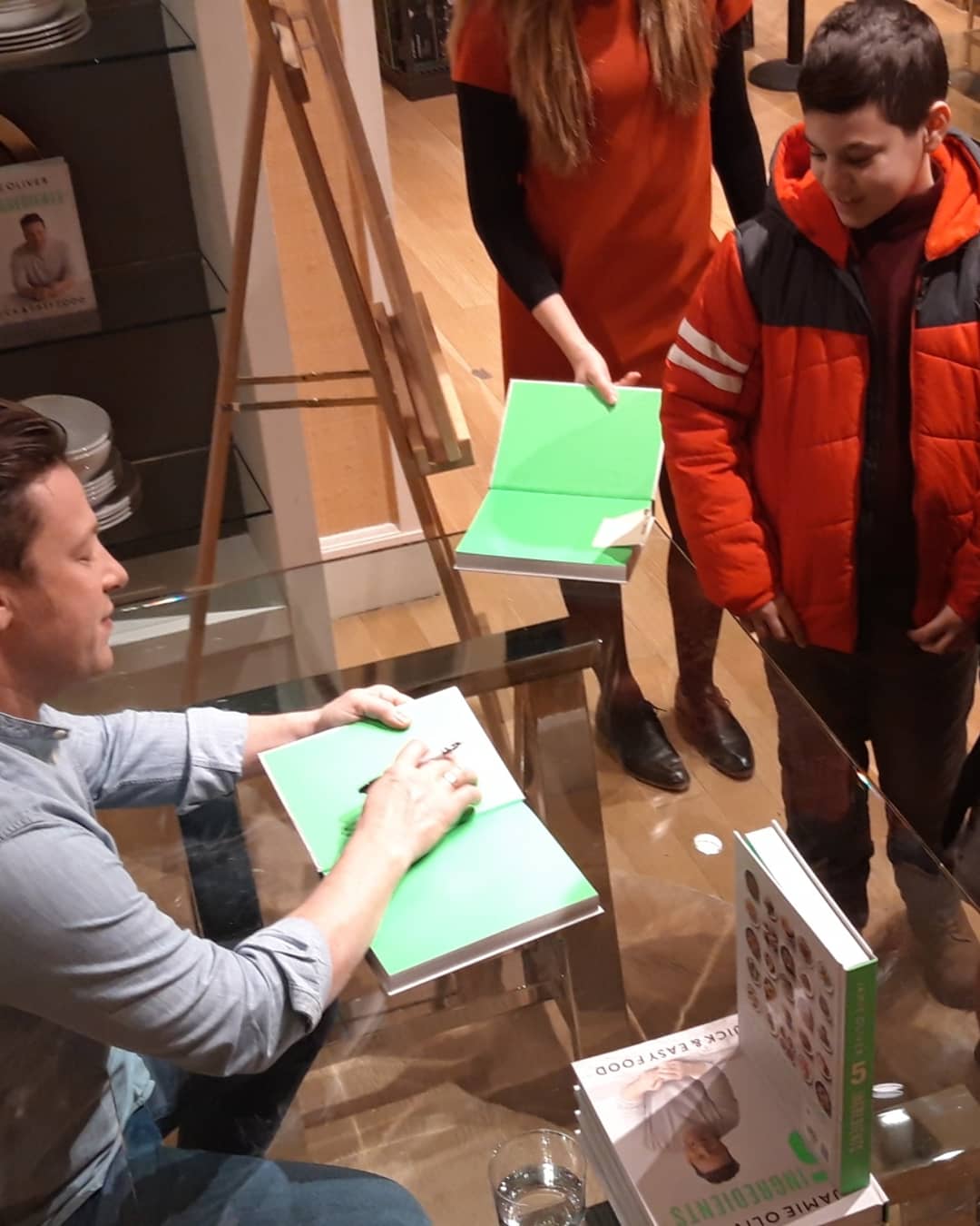 Megjithatë dy eksperiencat e tjera më fantastike që pata ishin pjesëmarrja në një klasë dekorimi cupcake-sh tek e famshmja Magnolia Bakery (për këtë do lexoni më shumë në postimin e ardhshëm) dhe qershia mbi tortë, të takoja idhullin tim Jamie Oliver e të merrja librin me autografin e tij.