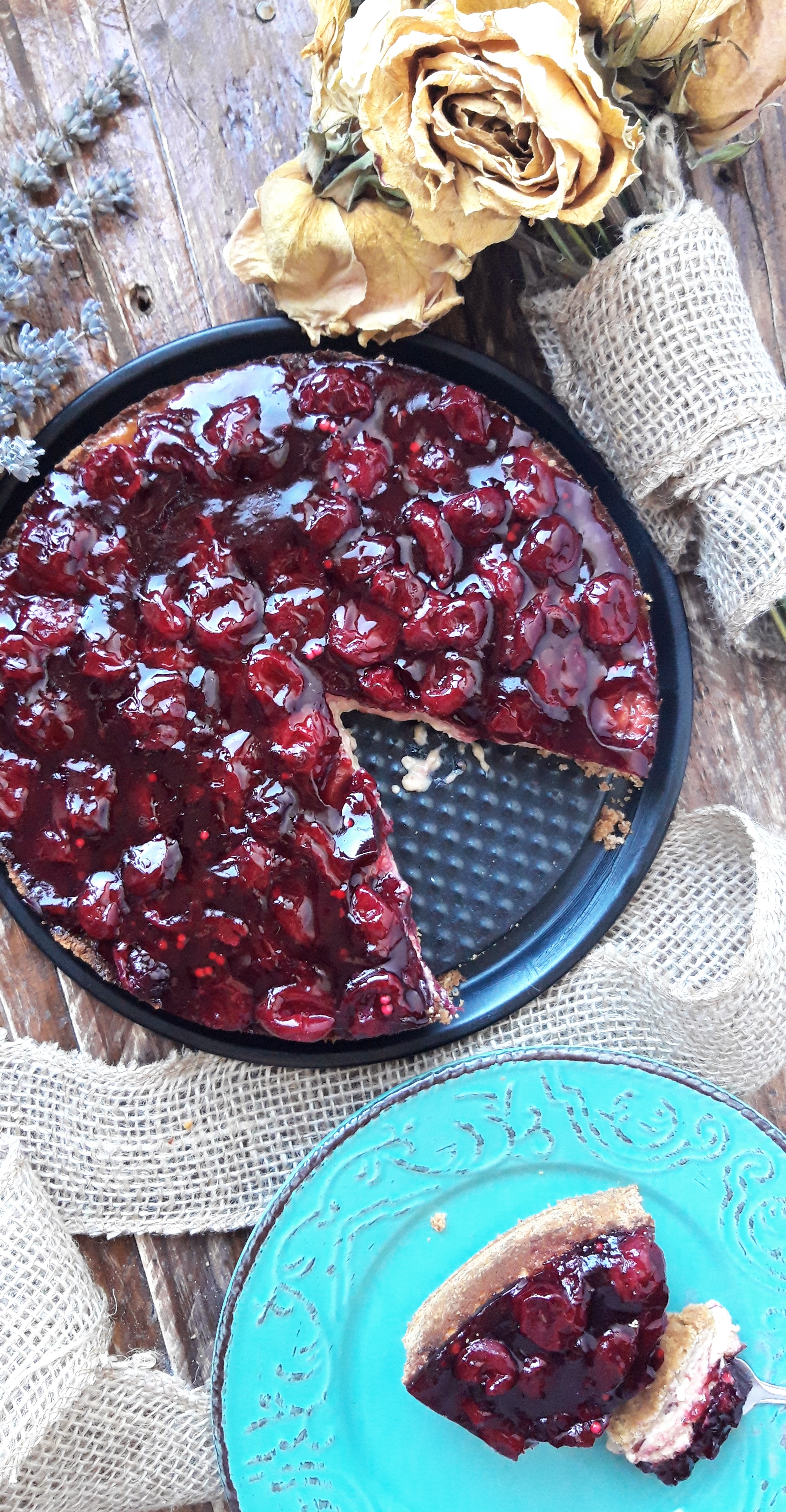 Shpesh herë ndodh që të hahet një ëmbëlsirë për fundjavë, por vetëm mundimi për ta gatuar të bën që ta lësh fare. Më kishte shkuar mendja që këtë të diel të gatuaja një ëmbëlsirë por ende nuk e kisha vendosur se çfarë do bëja. Kështu që vendosa të hap frigoriferin dhe syri më shkoi në një pako krem djathi. U kujtova që në ngrirje kisha disa qershi dhe në atë moment thashë pse të mos përgatis një cheesecake klasik me qershi? Dhe ashtu bëra, nxora vetëm gjashtë përbërës dhe në më pak se 40 minuta përgatita këtë tortë të shijshme.