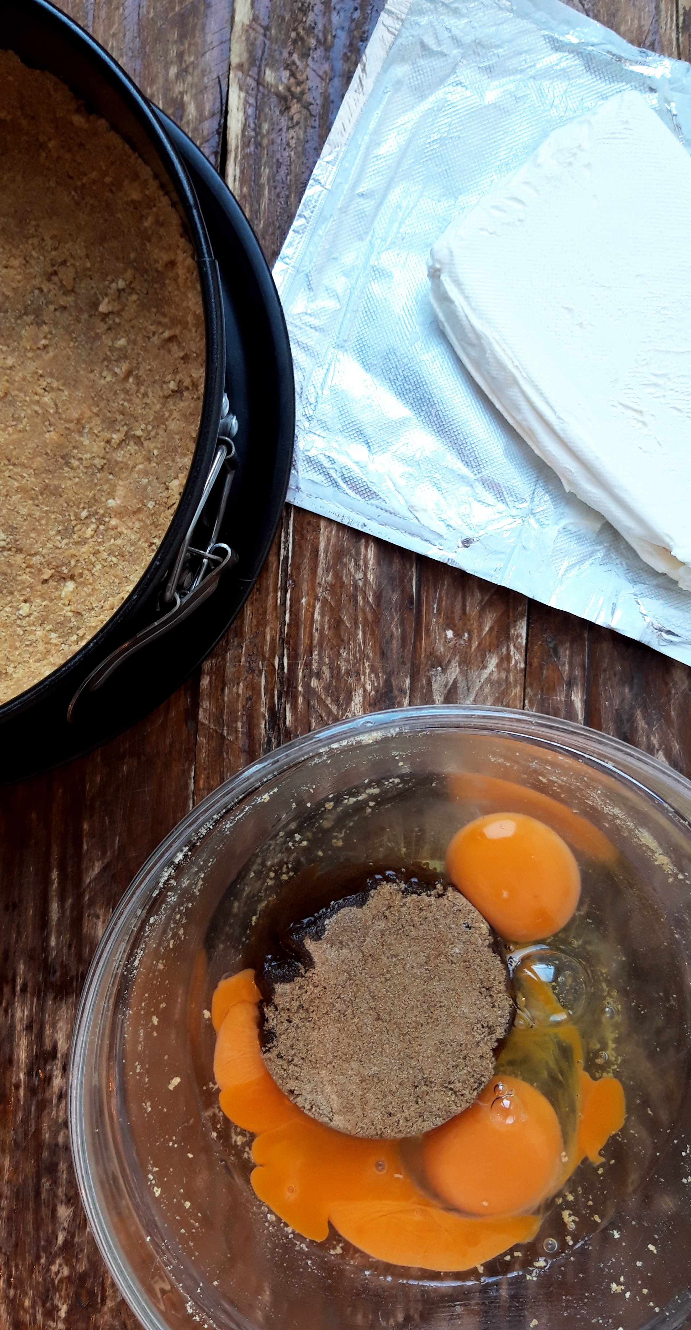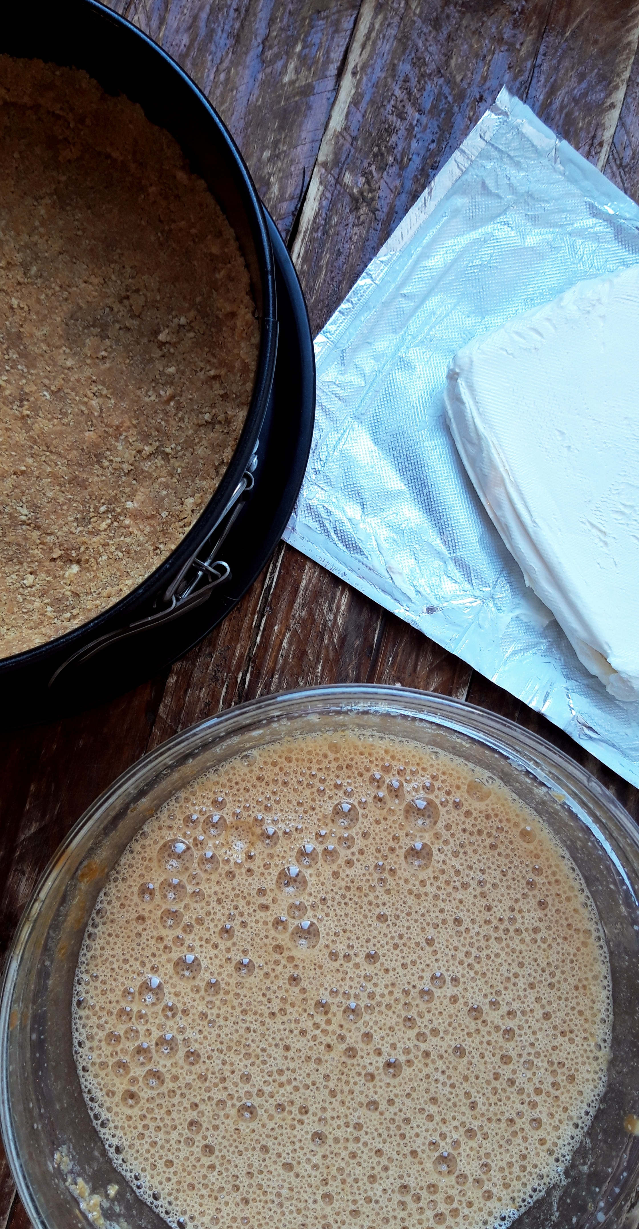 [lt_recipe name=”Cheesecake me qershi” servings=”5-6 persona” prep_time=”15M” cook_time=”40M” total_time=”4H45M” difficulty=”E thjeshtë” print=”yes” image=”https://bakemydayhappy.com/wp-content/uploads/2019/01/IMG_20190127_100405_132.jpg” ingredients=”Për bazën:;• 200gr biskota të thërmuara imët;• 100g gjalpë ;Për kremin:;• 3 kokrra vezë;• ½ kupë sheqer kaf;• 250gr krem djathi I kulluar shumë mirë nga uji;Shtresa e sipërme:;• 250gr qershi (ose çdo lloj fruti që të keni);• 2 lugë gjelle sheqer kaf;” ]Ngrohim furrën në 180˚C; Tresim gjalpin dhe ia shtojmë biskotave. I trazojmë mirë dhe më pas e shtrojmë në tave duke e ngjeshur fort në një shtresë sa më uniforme. E lëmë në frigorifer të ftohet sa të bëjmë kremin; Rrahim fort vezët me sheqerin kaf deri sa të bëhen shkumë si në foto. Shtojmë kremin e djathit dhe I trazojmë mirë; Nxjerrim tavën nga frigoriferi dhe shtojmë kremin. E pjekim në furrë për 20 minuta deri sa të marrë një ngjyrë të artë të lehtë dhe të jetë ende e lëngshme në mes; E nxjerrim nga furra dhe e lëmë të ftohet për rreth 20 minuta; Përgatisim frutat duke I hedhur në një tigan së bashku me sheqerin kaf. I lëmë të vlojë deri sa të kenë përgjysmuar lëngun e tyre dhe e fikim. Pasi keku të jetë ftohur dhe frutat të jenë të vakëta, ia hedhim përsipër cheesecake-ut dhe e lëmë të ftohet në frigorifer rreth 3-4 orë.[/lt_recipe]