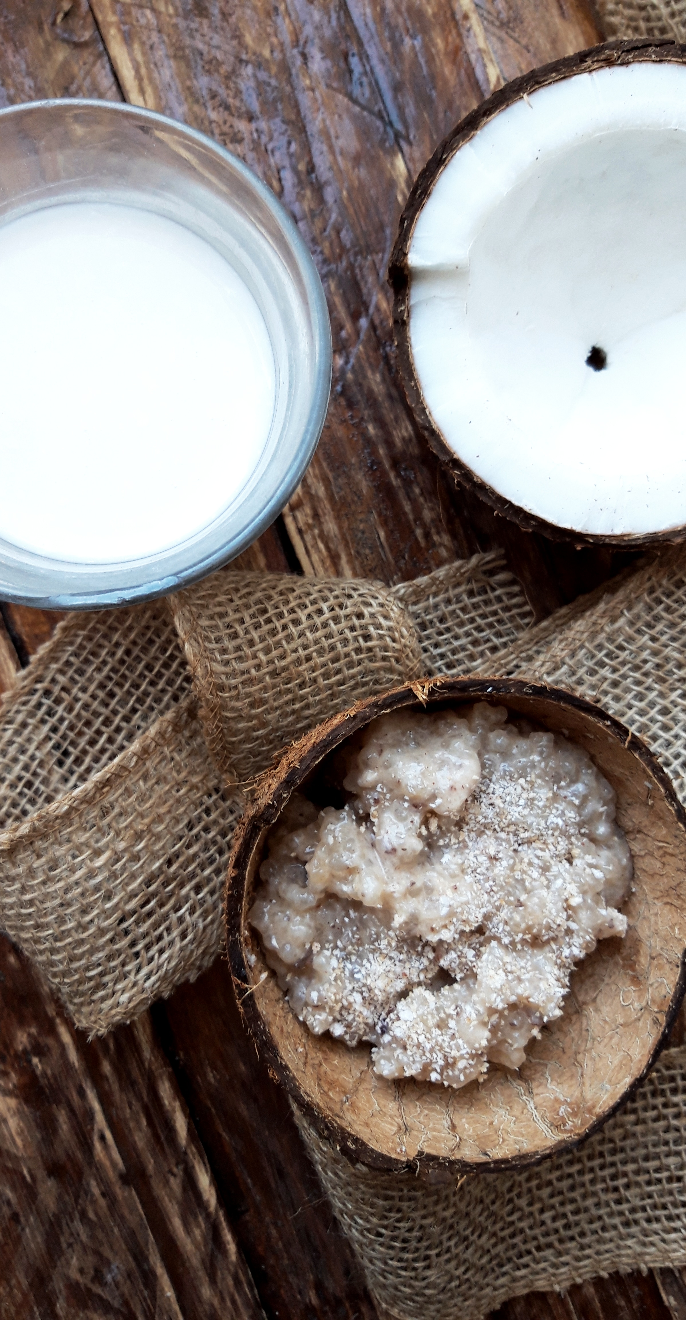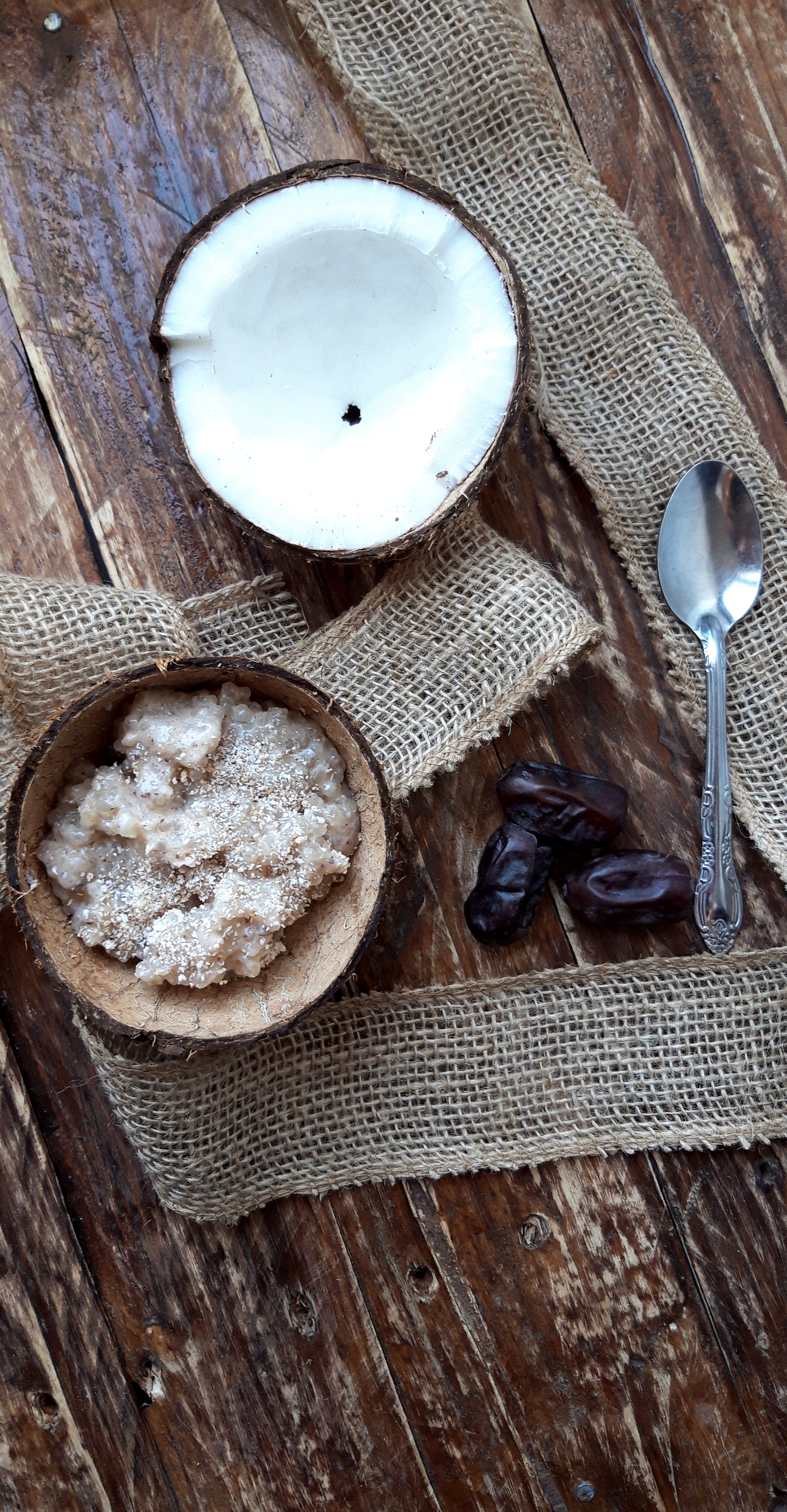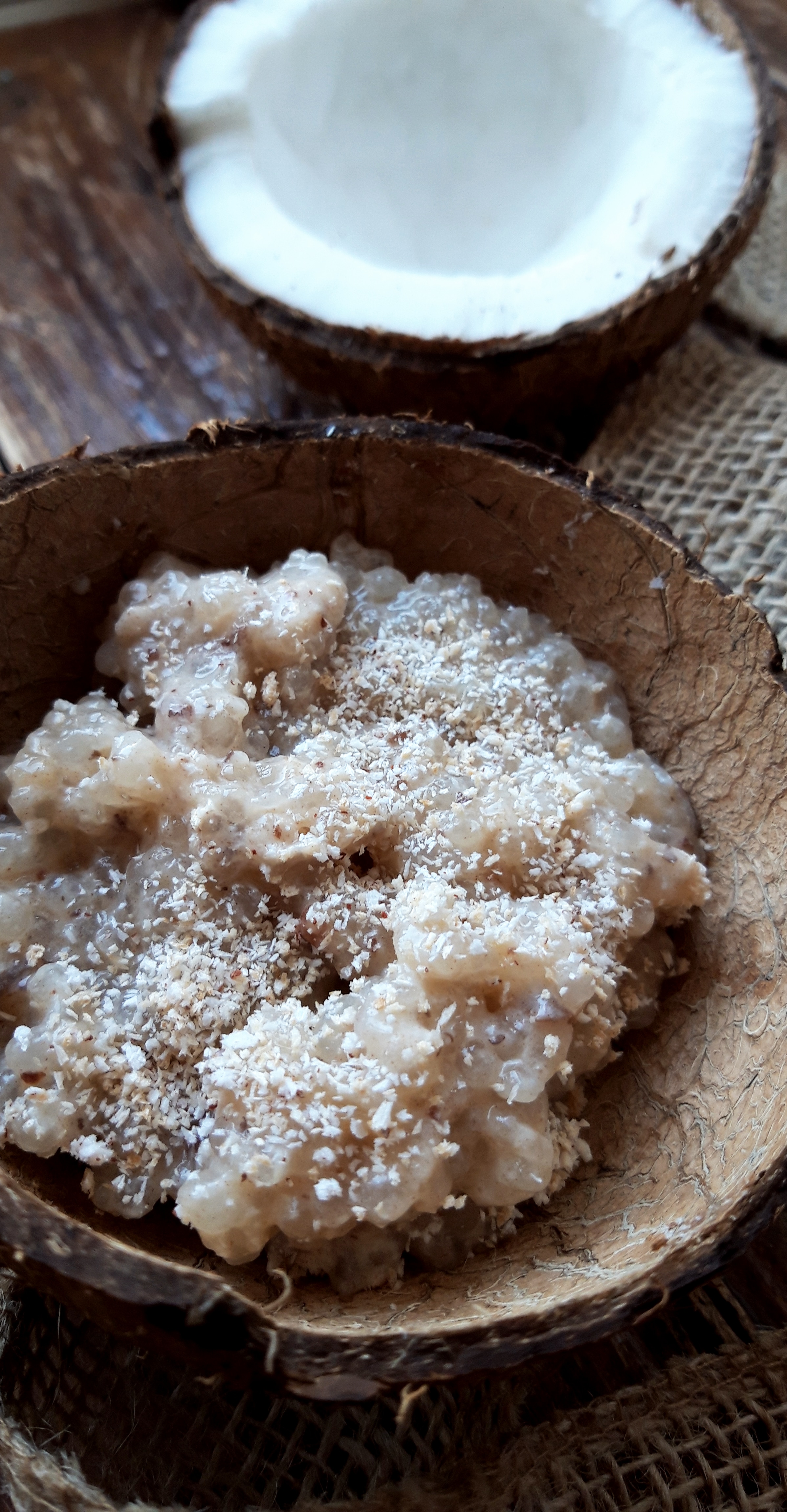 Pra, lashë në ujë perlat e tapiokës që në darkën e të premtes dhe në mëngjes I gatova me qumësht kokosi të miksuar me hurma arabie për t’i dhënë ëmbëlsi. Për sot po ndaj këtë recetë me ju.