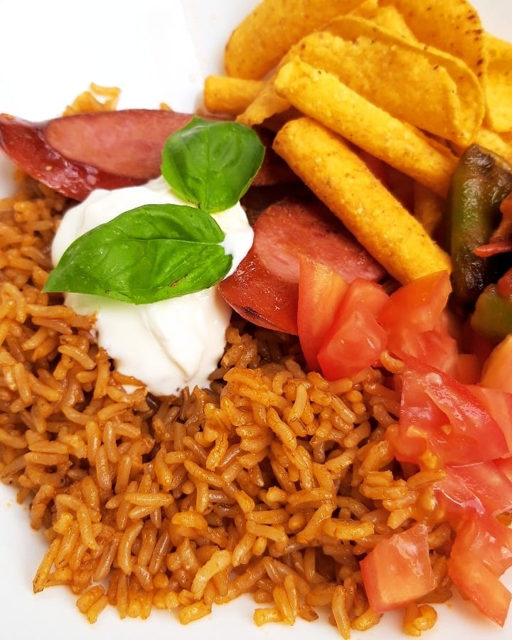[lt_recipe name=”Një sallatë me oriz ndryshe nga e zakonshmja” servings=”4 persona” prep_time=”5M” cook_time=”15M” total_time=”20M” difficulty=”E thjeshtë” print=”yes” image=”https://bakemydayhappy.com/wp-content/uploads/2019/07/rice-bowl-salad.jpg” ingredients=”Për orizin:;• 250gr oriz kaf integral kokërrgjatë;• 1 lugë gjelle paprika ( piper I kuq I ëmbël);• 300 ml ujë;Për kompozimin e sallatës:;• 2 domate të prera në kuba;• 8 feta sallam të pjekur ;• 200gr patatina nachos me djathë;• 4 lugë gjelle salcë të athët (schmand) ;” ]Hedhim në tenxheren elektrike përbërësit e pilafit me piper; Mbyllim kapakun e tenxheres dhe e ndezim në programin manual për 5 minuta. E fikim tenxheren dhe e lëmë deri sa t’i bjerë vetë presioni; Pasi të ketë kaluar koha e nevojshme, hapim kapakun dhe orizin e gatuar e ndajmë në 4 tasa të thellë; Në secilin tas ndajmë nga dy feta sallam të pjekur, patatinat nachos dhe domatet në kuba. Në fund, sipër secilit tas hedhim salcën e athët (schmand); Kjo sallatë mund të konsumohet edhe nëse orizi është I ftohtë megjithatë shijen maksimale e ka me oriz të ngrohtë.[/lt_recipe]