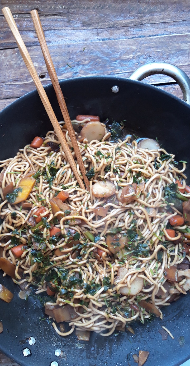 Siç tashmë e keni mësuar, në 7 shtator unë nisa sfidën e dollapit ndaj bërja e ketyre makaronave kineze vegjetariane ishte një opsion I mirë për të zbrazur disi dollapin dhe ngrirjen. Kjo pjatë është kaq praktike dhe ju mund ta pasuroni me çdo lloj produkti që ju dhe familja juaj pëlqeni.