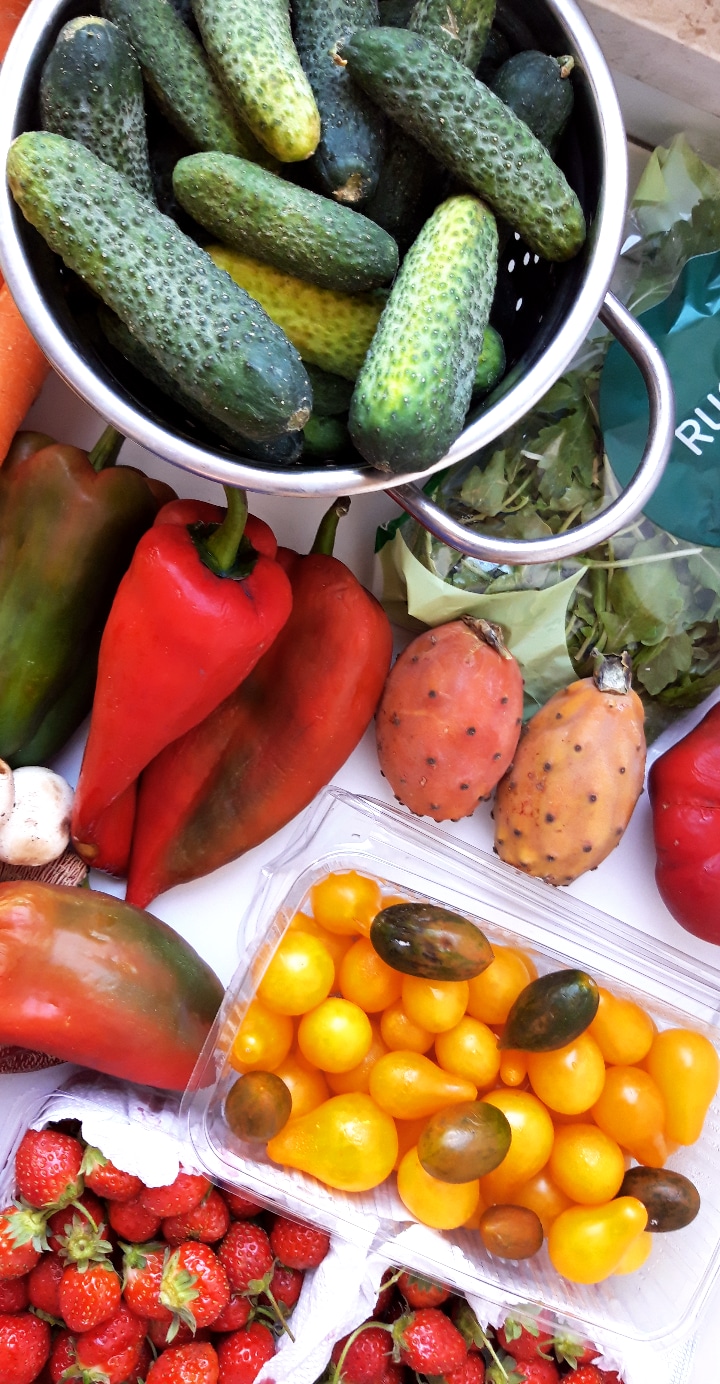 - Si gjithmonë preva kërpudhat, 2 qepë (kam kuptuar se nuk konsumoj më shumë se kaq në javë), copëtova 2 speca gogozhare, lava kastravecat dhe domatet, griva karrotat në rende që ti kem për kekun e të shtunës