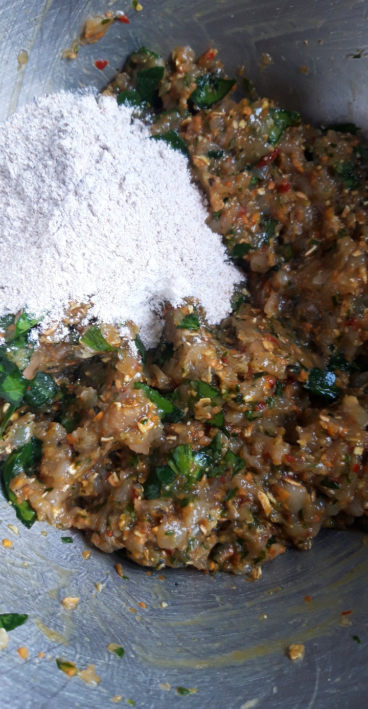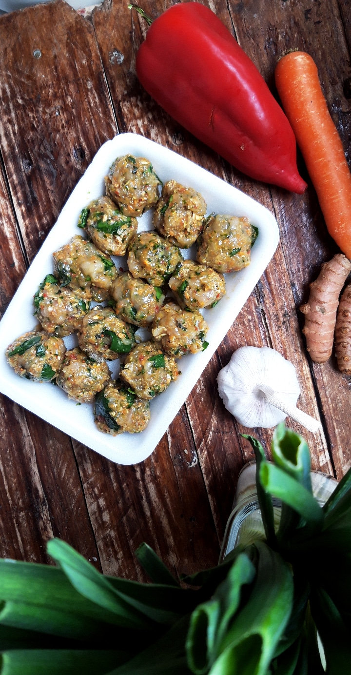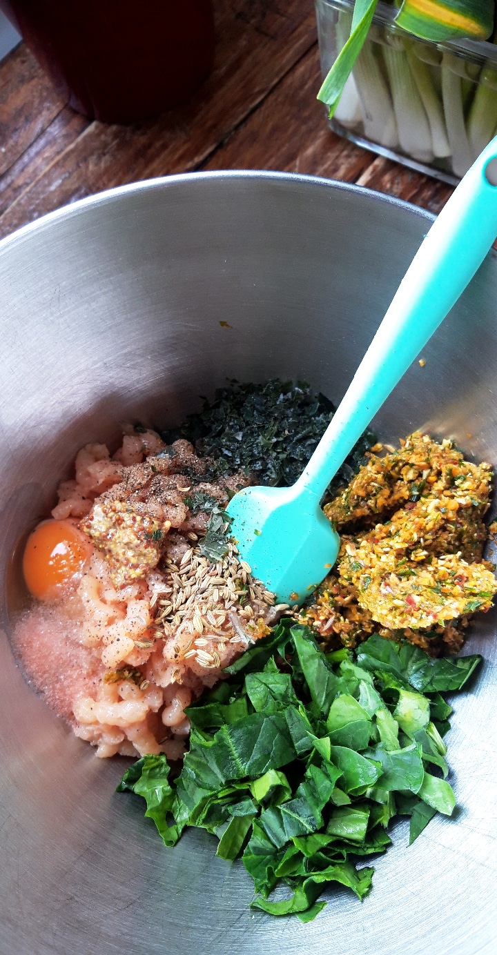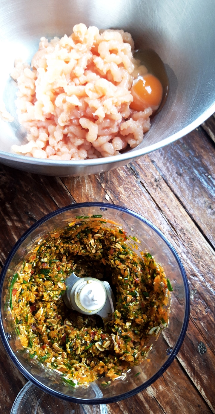 [lt_recipe name=”Qofte pule me perime dhe erëza” servings=”30 qofte të vogla ose 10 të mëdha” prep_time=”10M” cook_time=”10M” total_time=”20M” difficulty=”E thjeshtë” print=”yes” image=”https://bakemydayhappy.com/wp-content/uploads/2020/03/qofte-pule-1-533×1024.jpg” ingredients=”• 500g fileto pule;• 3 bishta qepësh të njoma;• 1 karrotë mesatare;• 1 rrënjë kurkuma e njomë (opsionale);• 2 thelpinj hudhër;• ½ spec I kuq;• 2 lugë gjelle thekër petë;• 1 vezë;• Kripë, piper I zi;• 1 lugë çaji fara finoku;• Pak nenexhik të freskët;• 5 gjethe spinaq të grira;• 1 lugë gjelle miell integral;” ]Grijmë pulën në mikser ose grirëse mishi; Marrim përbërësit nga 2-6 dhe I grijmë në mikser sa më imët që të mundemi; Më pas bashkojmë në një enë, mishin, perimet e grira, farat e finokut, spinaqin, nenexhikun, miellin dhe I trazojmë mirë; Me duar të lagura formojmë qofte sipas dëshirës; Me këto sasi ju dalin 30 qofte të vogla, ose 10 të mëdha; Unë 15 copë I vendosa në ngrirjë për ti patur për ditë tjetër, ndërsa pjesën e mbetur të brumit e ndava në katër qofte të mëdha; Në një tigan gize (ose zgarë), hidhni pak vaj ulliri dhe sapo të nrohet mirë skuqini qoftet në zjarr të ulët nga të dy anët; Fare mirë, mund ti piqni edhe në furrë në 220◦C[/lt_recipe]